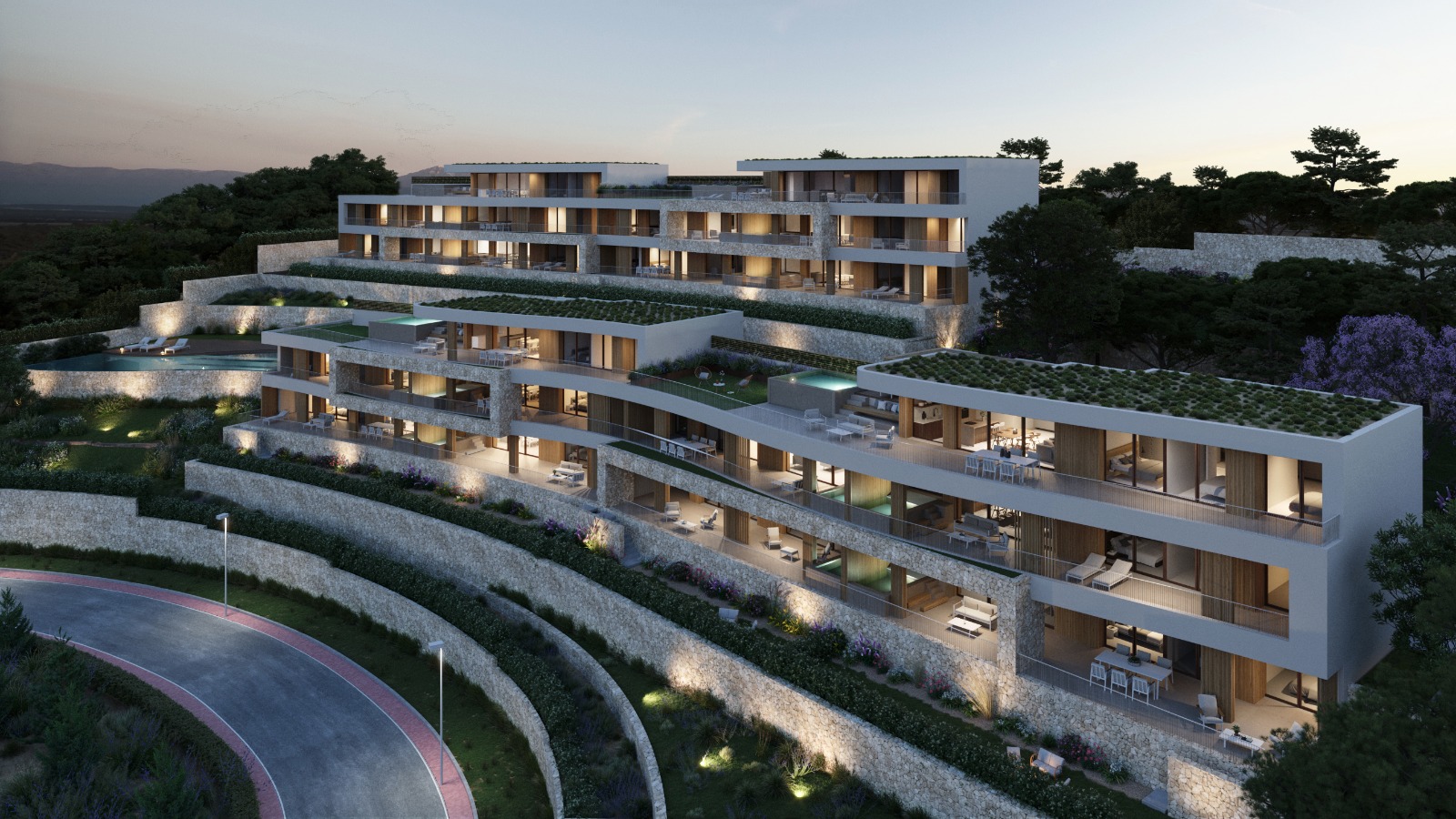 El residencial Andryala emerge de la topografía abrupta de la costa de Castellón adaptándose al paisaje con un diseño atemporal y materiales puros.